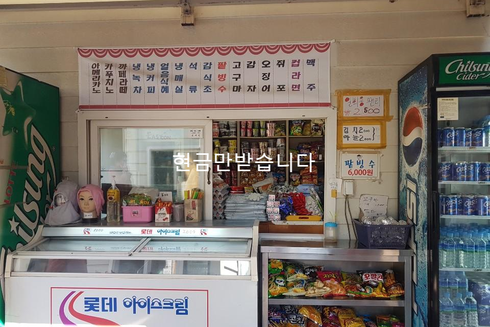 매점은 오직 현금만 가능합니다 키로 찍고 데스크에서 결제 이런시스템이 없습니다 계좌이체도 가능합니다 손님이 조금몰리면 아주머니 표정 어두워 지십니다 여긴 대체 왜그런지 모르겠습니다