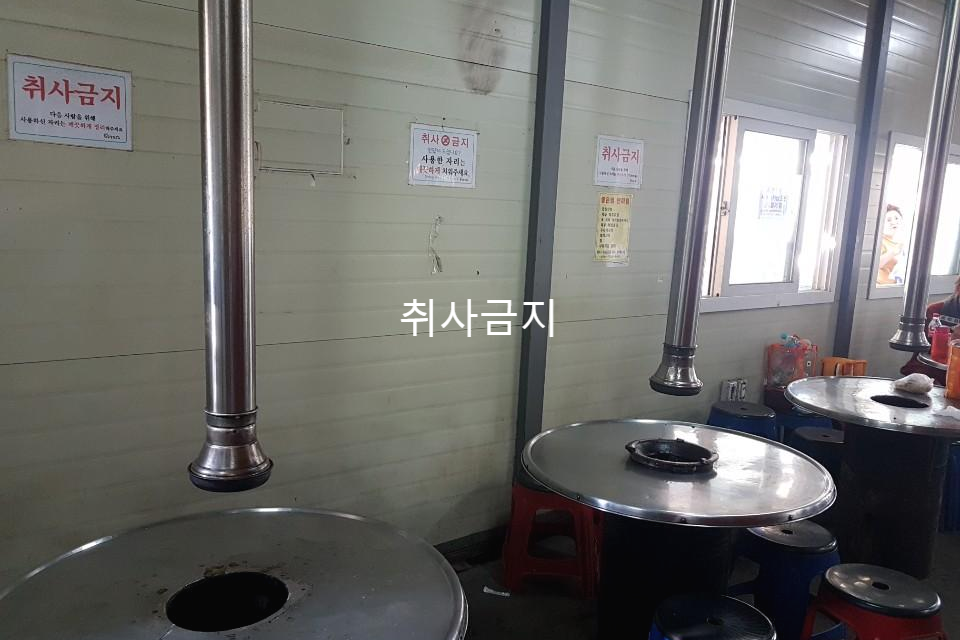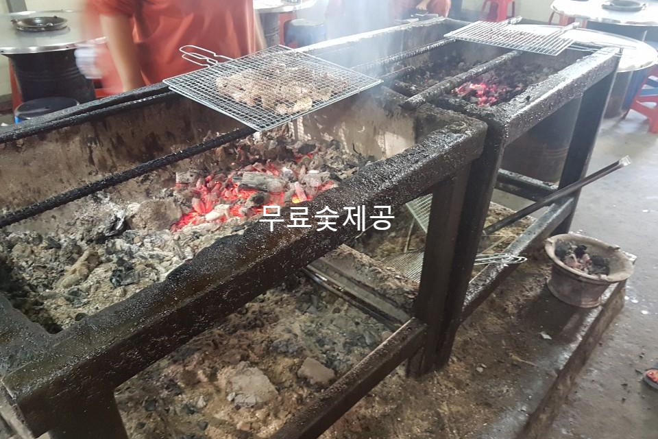 점심시간대에가니 유료식당 무료식당 모두 자리가 없었습니다 4시정도 되니 한산한모습입니다 무료식당은 무료로 숯이 제공되기 때문에 고기를 가지고 와서 구워드실 수 있습니다 테이블마다 화구가 있는데 거의 가운데 공용 바베큐 화로대에서 구워 드십니다 후라이펜이나 석쇠또한 챙겨오셔도 되지만 버너사용은 금지입니다
