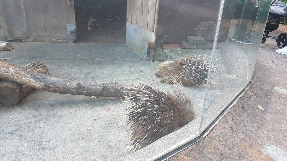 정말 신기하게 생겼던 아프리카 포큐파인 설명에 호저 혹은 산미치광이라고 적혀 있었습니다 온몸이 가시로 뒤덮인 포큐파인은 야행성동물이라고 합니다 저 가시에 찔리면 근육 속으로 파고들기 때문에 조심해야 한다고 합니다