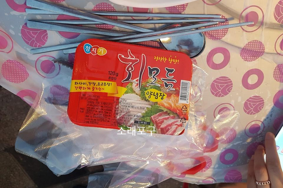 쇼핑을 하고 1층 튀김집 앞 노상자리에서 대하구이를 주문했습니다 자리를 마련해 주시고 자릿세를 15000정도 받으십니다 그리고 거기 메뉴 하나를 시켜하 하는 조건도 있습니다