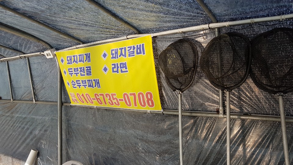 이곳은 잡은 송어를 손질해서 회로 먹을 수 도 있고 구이 그리고 매운탕을 먹을 수 있는 식당입니다 낚시하시다 출출하면 먼저 일반 식사를 주문해서 드실 수도 있습니다