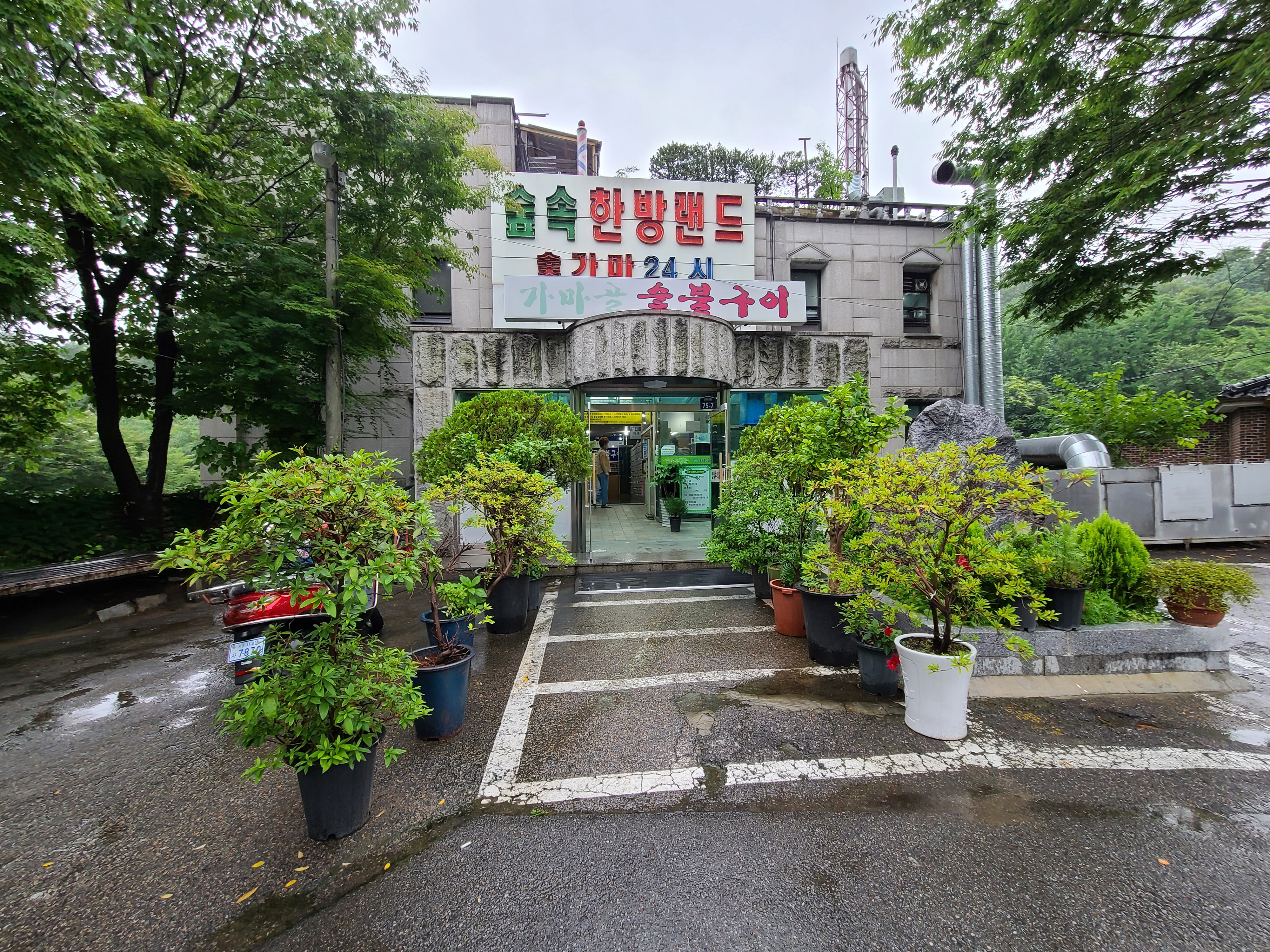 숲속에 위치해 있으며 봉원사 종점 버스정류장이에서 하차하면 됩니다 제가 방문한 날은 비가와서 운치가 더해져 더욱 좋았던것 같습니다 입구는 마치 옛날 온천에 온 듯한 느낌을 받게 하네요