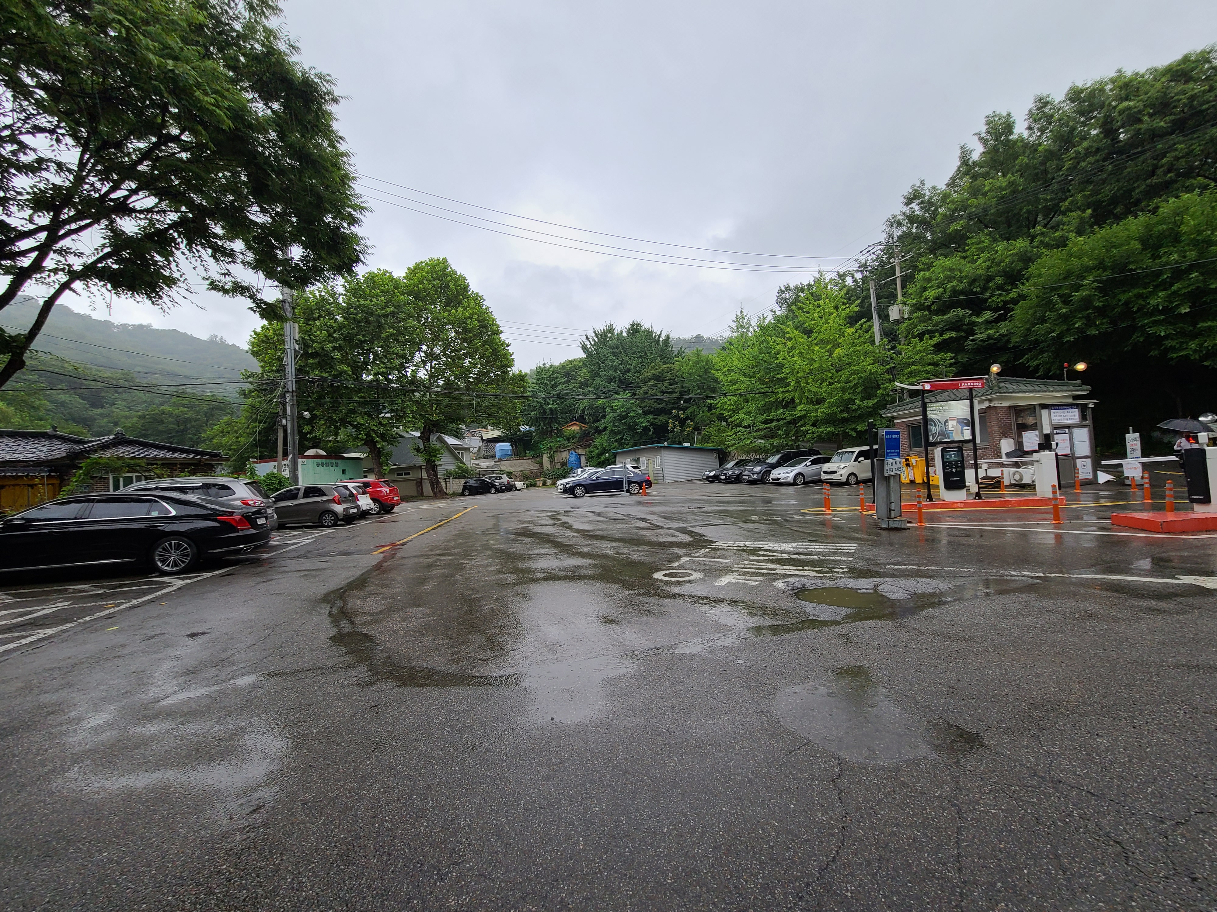 출입구쪽을 향해 올라가 보니 넓은 주차장이 또 나타납니다 그리고 버스정류장도 보이네요