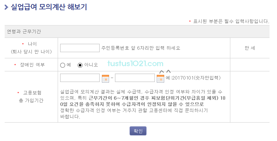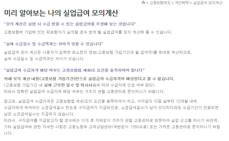 실업급여 모의계산은 입력한 정보에 맞춰 말 그대로 모의로 계산한 것이기 때문에 완전히 정확한 정보는 아니라는 점은 미리 주지하시고 넘어가시면 좋겠습니다.