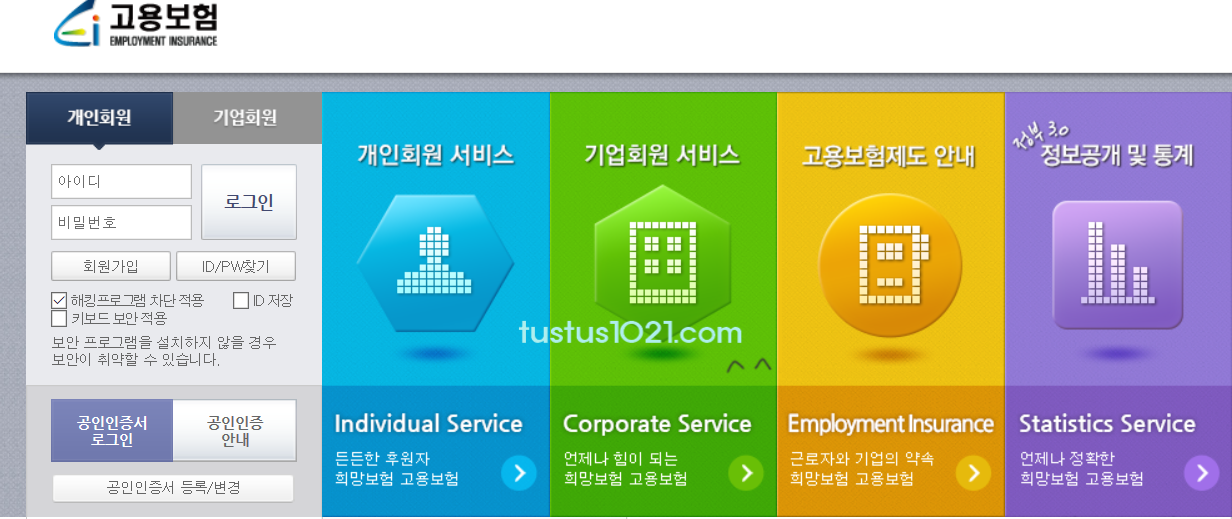 실업급여 모의계산을 하기 위해서는 고용보험 사이트에 접속합니다. 먼저 공인인증서를 준비해 주세요 홈페이지에 가입한 이력이 없다고 하더라도 공인인증서로 로그인 하실 수 있습니다.