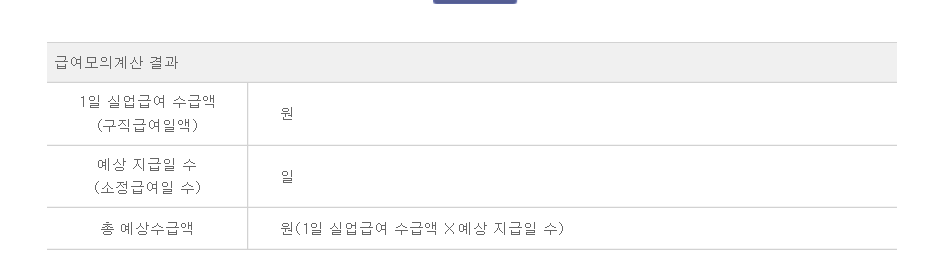 계산시 1일 실업급여 수급액이 나옵니다. 1일 구직급여 수급액은 퇴직 전 3개월 간의 1일 평균임금의 60%입니다. (단, 근로시간은 소정근로시간 8시간으로 계산됨)