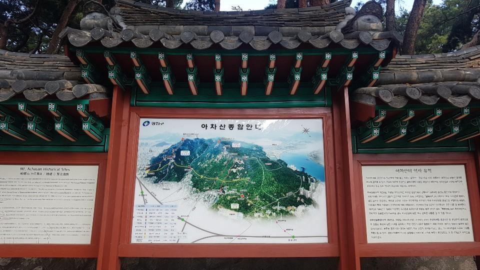 만남의광장 → 소나무숲 → 낙타고개 → 고구려정 → 대성암 → 아차산정상 → 제4보루성터 → 긴고랑입구 (약2시간 30분소요 )