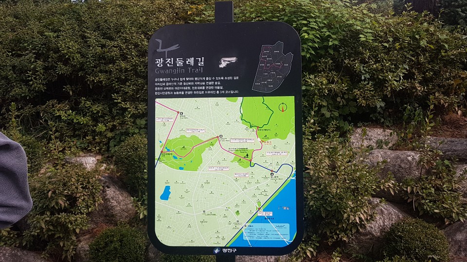아차산생태공연 →소나무숲 →아차산성길→낙타고개→ 친수계곡 →아차산관리사무소 →만남의광장 (1시간30분소요)