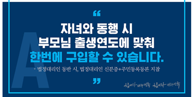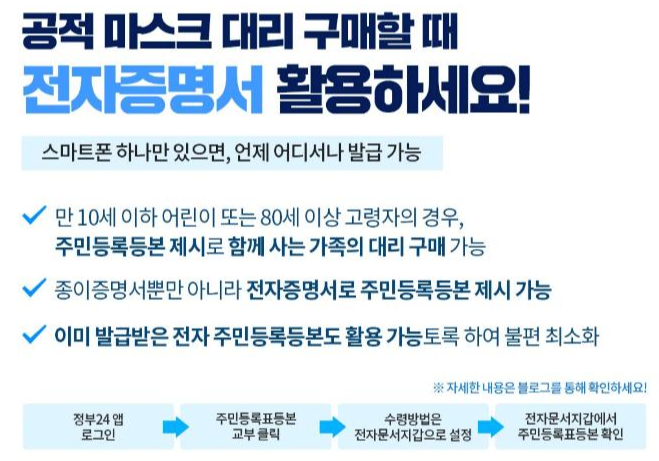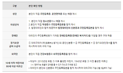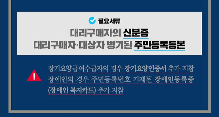 ▶대리구매시 대리구매자의 신분증 대리구매자 대상자 병기된 주민등록등본 등을 지참 하여야 하며 서류 발급은 핸드폰 앱을 통해 전자 증명서를 발급받으시면 됩니다