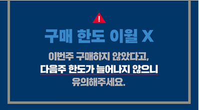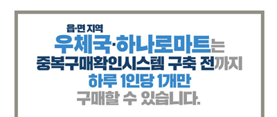 ▶주중 구매 이력이 있으면 해당 주에는 추가 구매를 할 수 없으며 마스크를 구매 하지 않더라도 다음주로 이월되지 않습니다