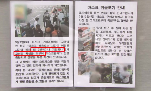 마스크5부제가 시행되었지만 여전히 부족한 물량탓에 약국에서 줄서기가 이어지고 다툼 또는 약사에게 욕설과 협박을 하거나 난동을 부리는 사태도 일어나고 있다고 합니다 그래서 공적마스크판매를 중단하거나 약국을 접어야되나 고민까지하는 기사가 실린 뉴스도 접 할 수 있었습니다