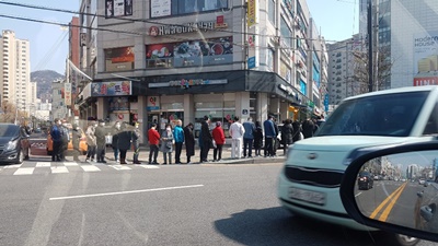 마스크를 편하게 구매했지만 한발자국만 나서보면 여전히 대로변앞 약국에는 마스크줄서기가 한창입니다