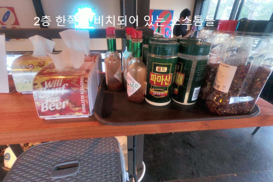 소스통은 번거롭게 2층에서 내려갈 필요 없이 한쪽에 준비되어있었습니다