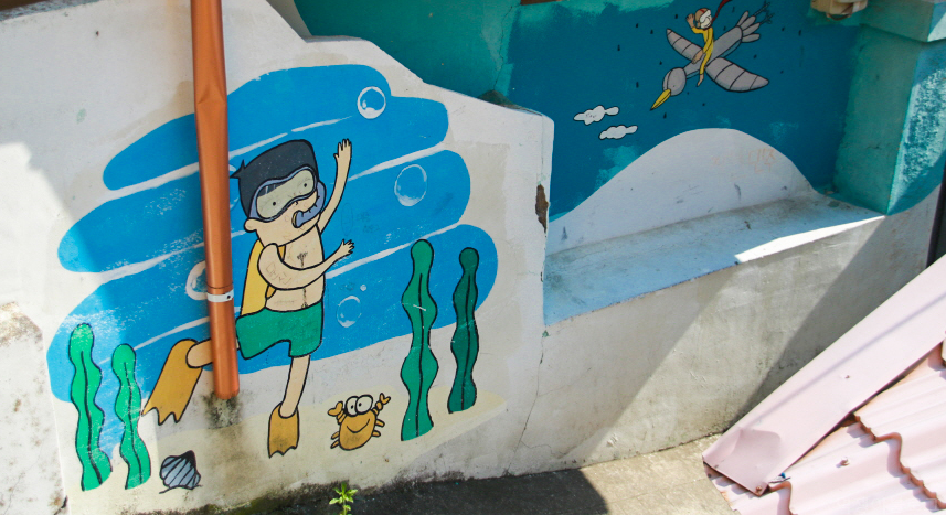 벽화를 구경하는것도 재밌지만 언덕을 따라 올라가면 여수 바다풍경 또한 만끽할수 있는 곳입니다