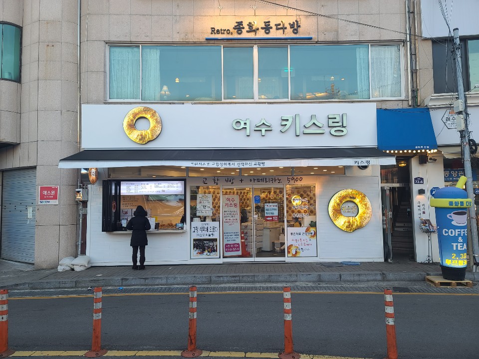 키스링 - 코로나로 인해 매장내 취식은 불가였습니다 택배 판매도 하고 있습니다 촉촉한맛이 커피랑 잘 어울리며 맛있긴 하지만 조금 비싸다는 생각은 들었습니다