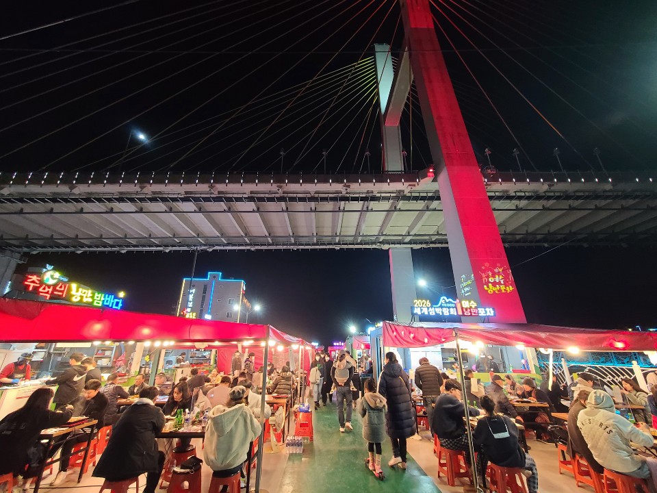 낭만포차거리는 전남 여수시 종화동 300-3 거북선대교 아래에서 소음공해 환경오염및 교통혼잡등 여러가지 문제로 돌산2대교 하부쪽으로 200m가량 옮겨졌습니다