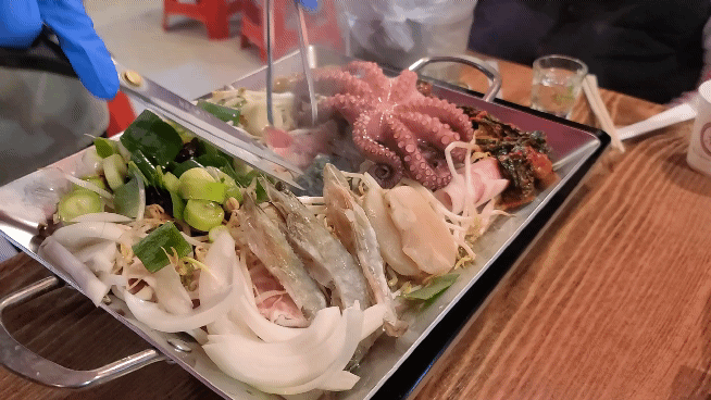 여수낭만포차거리 돌문어삼합에 들어가는 식재료는 약간씩 차이가 있다고 합니다 어딜가도 보통이상은 하는것 같습니다