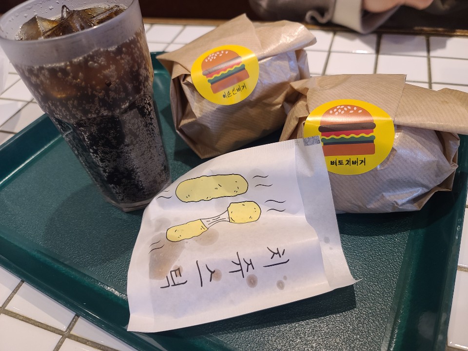 이순신수제버거 - 그렇게 줄서서 먹을 만큼 맛있는가 하는 의문은 생겼지만 저는 웨이팅 없이 먹었기에 괜찮았습니다 특이한 점은 가게 내부가 좁아서 버거 구매후 건물 뒷편 라운지에 가서 취식이 가능하다는점입니다