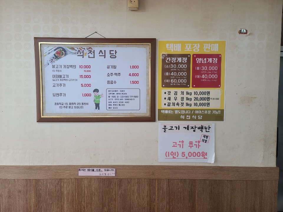 불고기 게장백반 가격은 1만원입니다 단 1인주문시 15000원