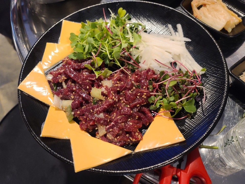 소고기전문점이라 그런지 육회는 말할필요가 없었습니다 치즈까지 데코해서 넘 이쁘게 나와서 박수까치 쳤었네요