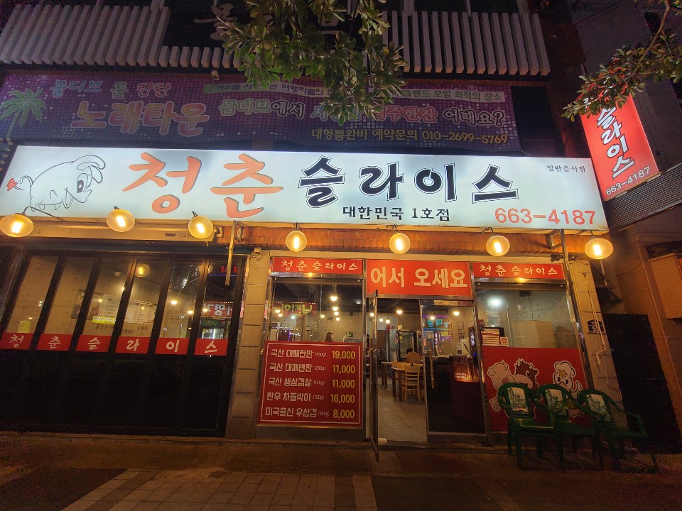 사실 삼겹살이 먹고 싶었던날 ( 깍뚝연탁구이를 알기전 ) 사장님추천으로 방문했던 청춘 슬라이스
