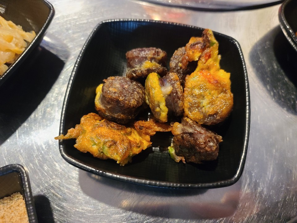 기본 야채들과 파김치 순대튀김까지 술을 마시다 보니 안주로 기본찬도 많이 먹었는데 리필도 아낌없이 해주셨습니다