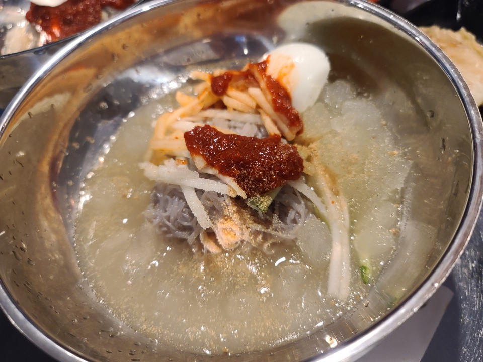 특이하게 냉면은 시키면 비냉 물냉 구분없이 얼린 육수를 따로 내어주시는데 이게 또 술을 부르는 안주로 탄생합니다