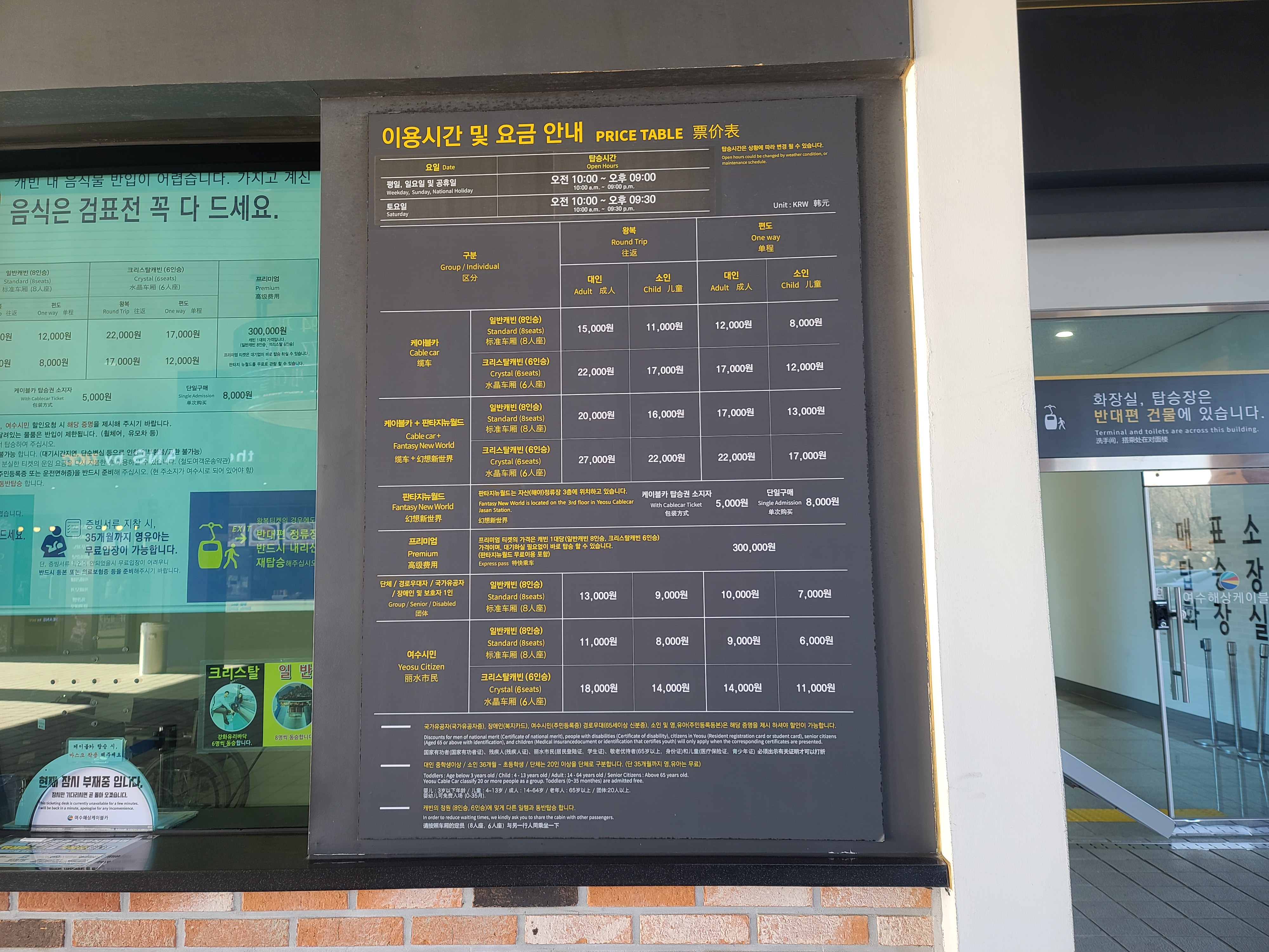 타는곳으로 가면 크리스탈과 일반 캐빈의 타는곳이 나뉘어져 있습니다
