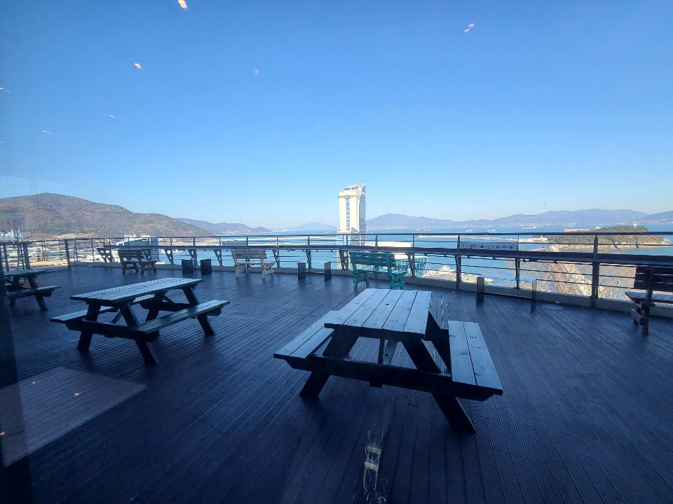 맞은편에 도착하면 뷰가 아주 멋진 동백 카페가 있습니다