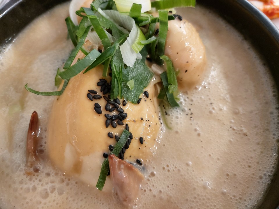 약수와 상황버섯으로 우려냈는데 약간 한방냄새가 나는듯 했으나 과하지는 않아 괜찮았습니다 개인적으로 진듯하고 농도있는 국물맛이 아주 좋았으며 고기도 보들보들하고 속도 꽉차서 만족스러운 한끼를 먹고 나왔네요