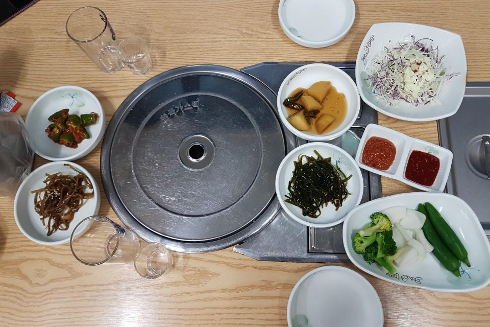 기본찬으로 나오는 반찬 모두 먹을만했습니다 식전에 먹기 좋게 샐러드도 나오고 쌈장 범벅이 되어있는 고추도 아삭아삭 하니 괜찮았고 감자도 하나씩 집어먹으니 달달하니 맛있더라고요 우엉조림도 맛있었어요