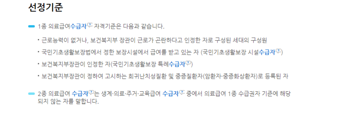 의료급여수급권자 선정기준