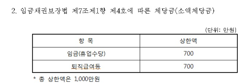 연령대별로 인상이 되었으므로 본인이 해당되는 금액이 얼마인지 표를 보고 참고해주시면 됩니다 참고로 소액체당금은 연령에 따른 상한액이 따로 정해져 있지 않습니다