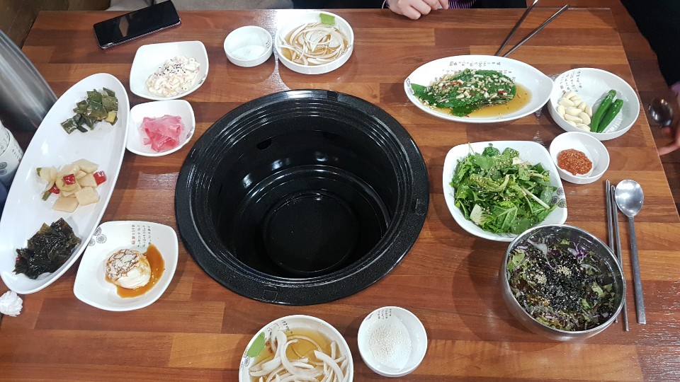 기본찬입니다 이곳이 맛집인 이유는 별거 아닌것 같지만 깻잎절임이라던지 곰피 대파로 담근 새콤 간장지도 정말 맛있었습니다 묵사발 육수도 새콤하고 시원하니 딱 좋았구요 양념맛을 보면 맛집인지 아닌지 딱 알 수 있죠 고기도 나쁘지 않았지만 저는 기본찬이 더 만족스러웠던것 같습니다