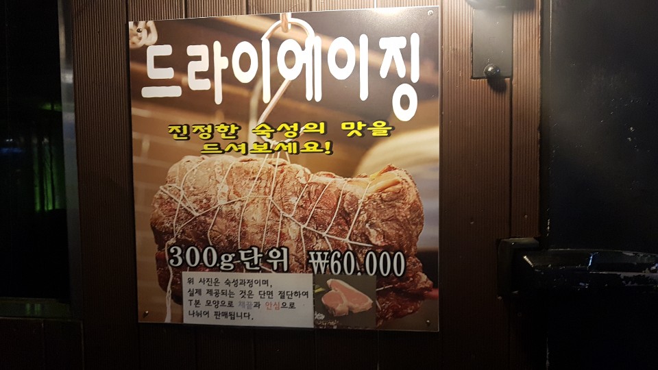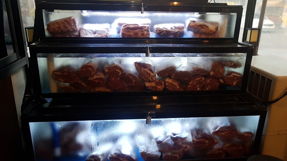 이곳은 독특한게 수중숙성 한 한우를 판매하는 곳인데 들어서자 마지 수중에서 숙성중인 고기들을 확인 할 수있었습니다 수중에서 진공상태로 일정기간 동안 온도변화 없이 숙성이 되면 일반 냉장 숙성과 다른 부드러움과 육즙을 맛볼수 있다고 합니다