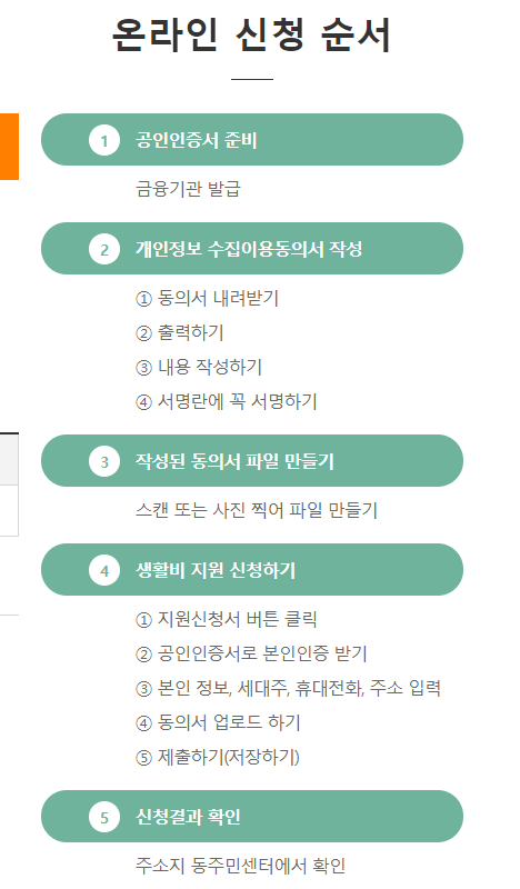▶공인인증서인증▶신청서내려받기 후 작성 ▶파일업로드 ▶ 심사 후 지급여부가 결정되면 업무일 기준 3-4일 이내 문자로 통보
