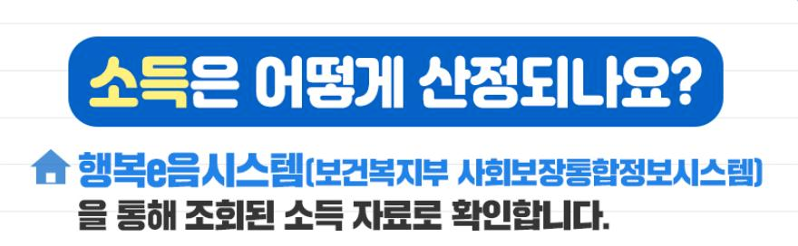 자신의 소득기준을 알고 싶다면 각 동주민센터를 방문해 ‘행복e음 시스템’을 통해 소득조회가 가능합니다