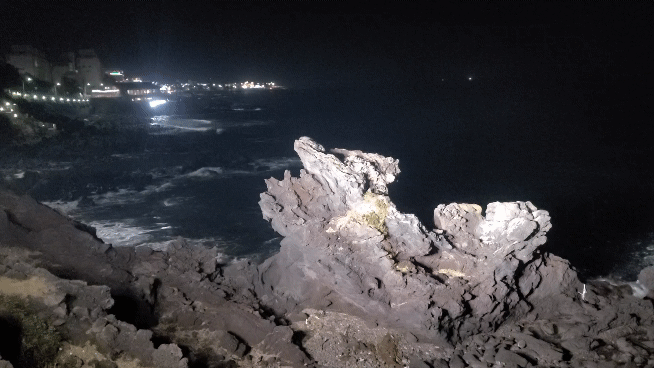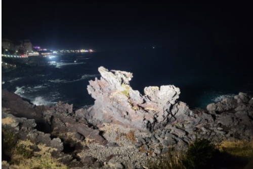 용두암을 옆에서 보면 용머리 모양을 하고 있는것처럼 보이며 저녁시간에는 불빛이 용두암을 비추고 있어 공항근처에 숙소를 잡으신 분들은 저녁 산책겸 다녀 오시기도 좋은 코스입니다