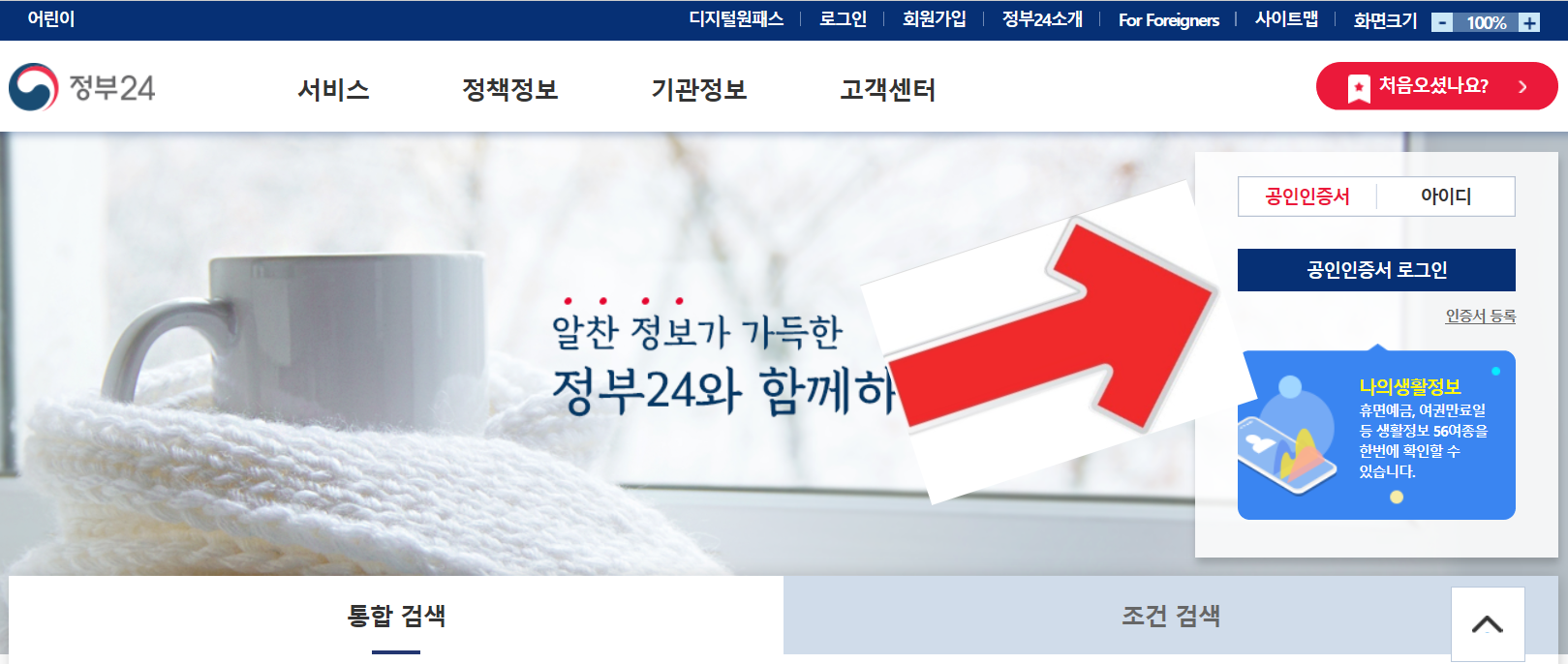 오른쪽 상단에 정부24바로가기 클릭해주세요!