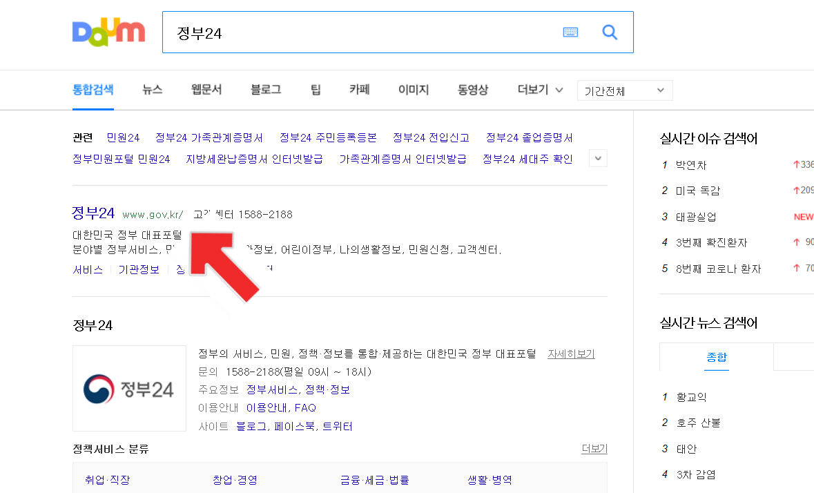주소창을 클릭하시면 정부24홈페이지에 접속하시게 됩니다