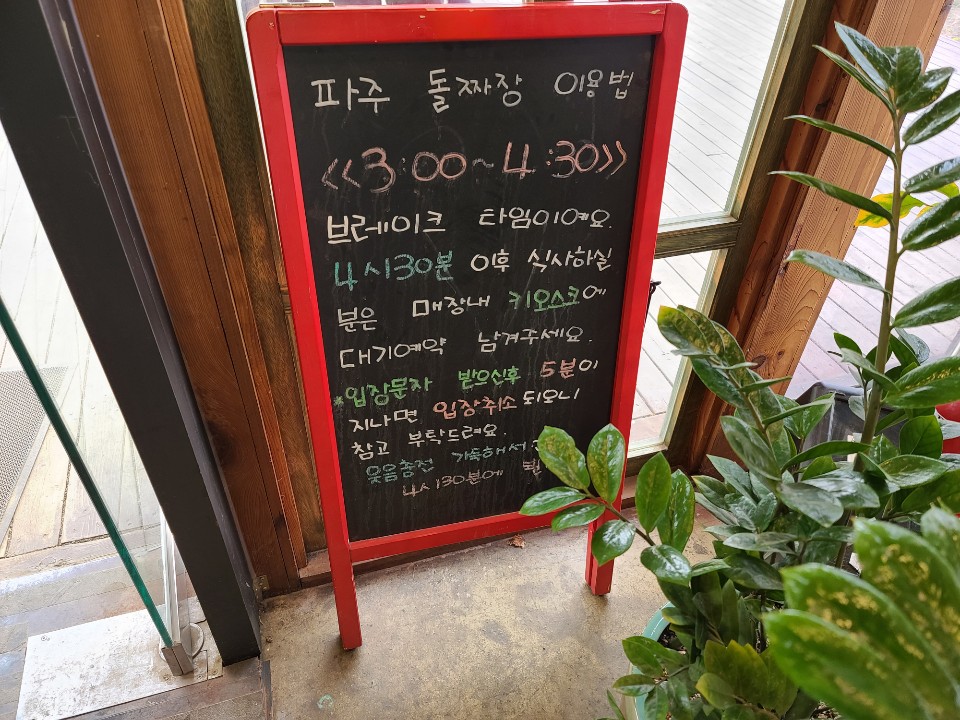 주소는 경기도 파주시 상지석동 511-9 생각보다 조금 많이 들어가는 느낌이었습니다 도착해보니 역시 웨이팅이 있더군요 도착하시면 일행중 한분은 먼저 대기명단에 이름을 올리시길 바랍니다