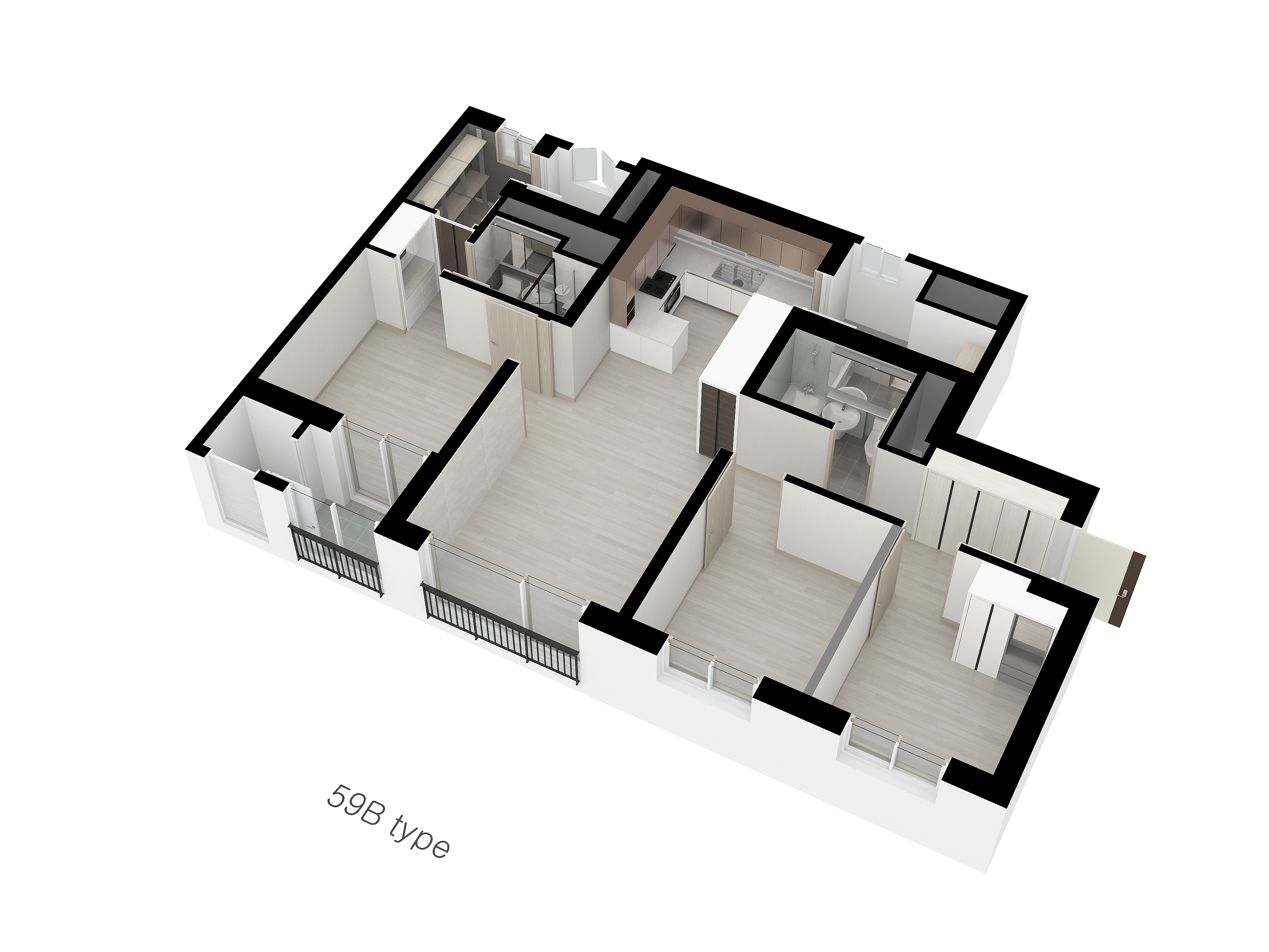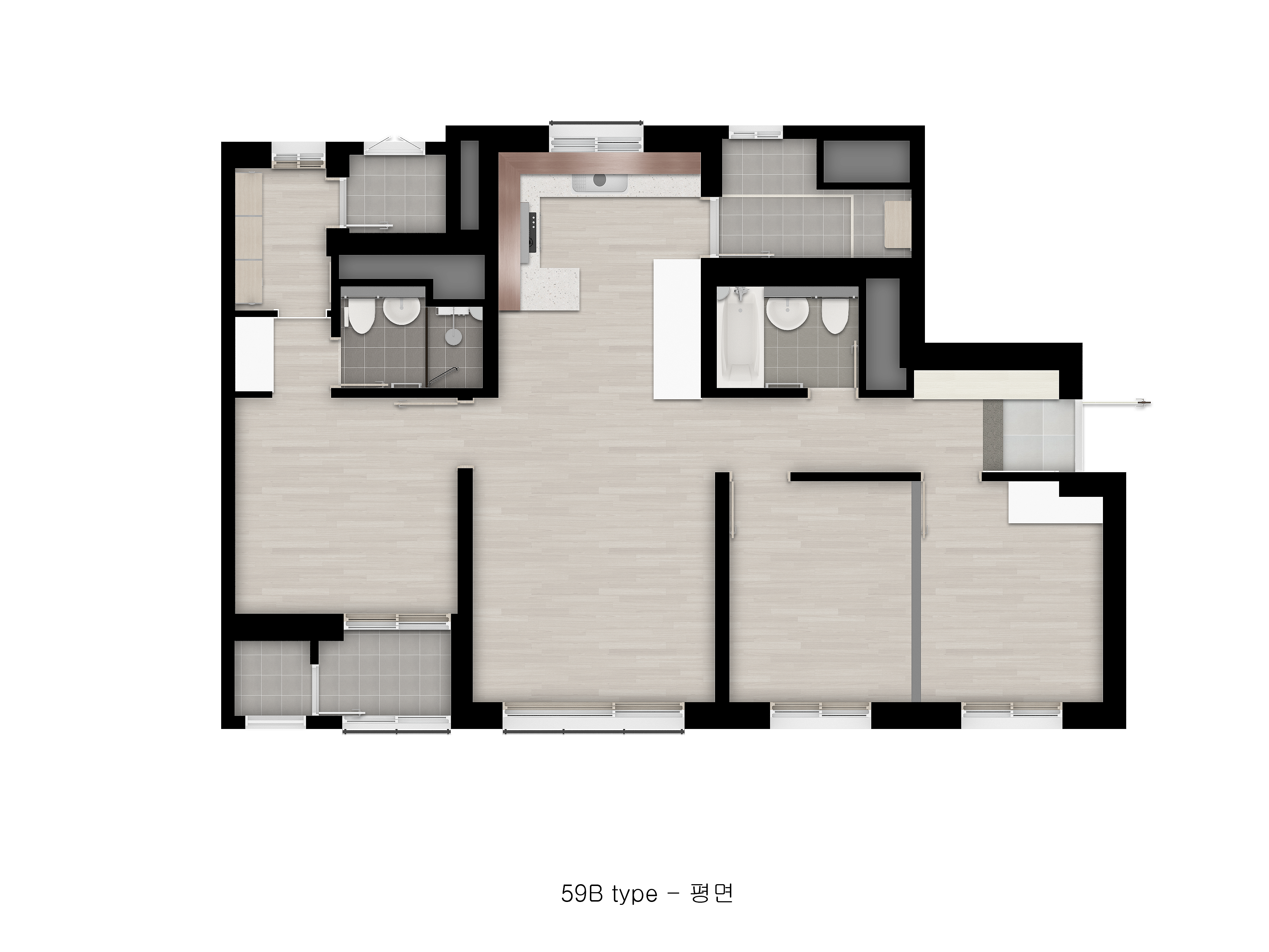 59A와 동일 조건 + 넓은 주방 다용도실 제공