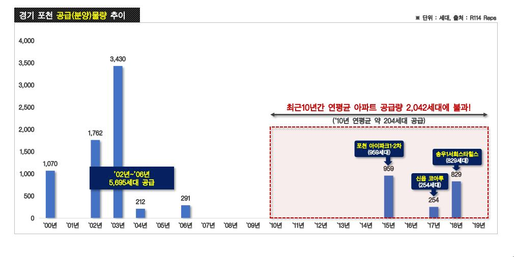 신읍동 송우리 5700세대 대규모 공급 이후로 8년간 공급 물량이 없었던곳으로 최근 10년가 연평균 아파트 공급량은 2024세대에 불과 합니다