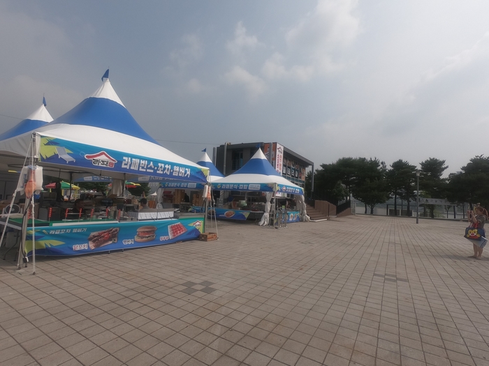 뚝섬은 카페테리아가 있습니다 사람많은 성수기에는 여기저기 다 줄 서야 하는데 오늘은 너무 한적해서 오픈을 안 한 것 같기도 하고..