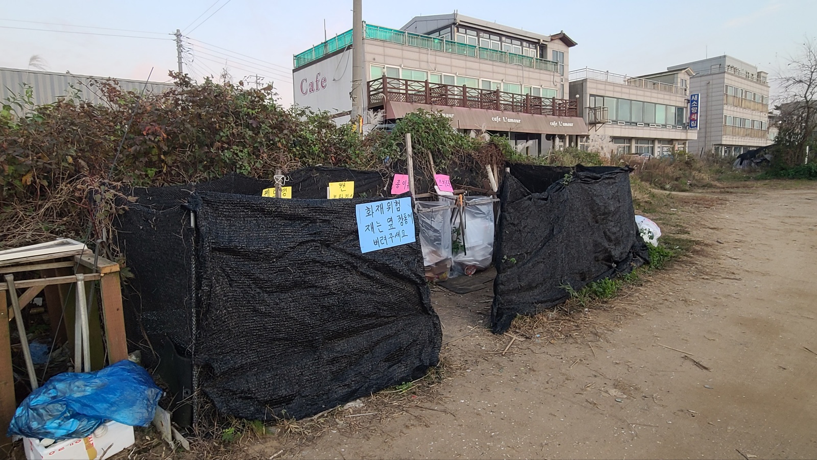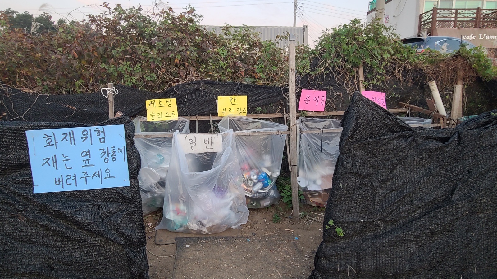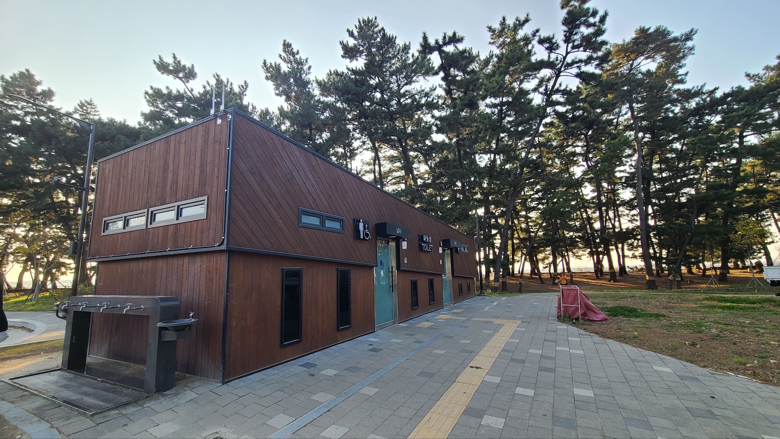 공용 화장실은 매우 멀기 때문에 화장실 근처 그러니까 캠핑장 입구 기준으로 끝 안쪽으로 자리를 잡는다면 모를까 한번 다녀오는 것이 정말 쉽지 않았습니다 그래서 저희는 매점을 이용하다 결국엔 이동식 변기를 설치했습니다