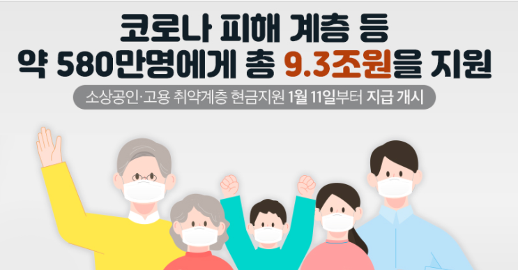 한번이상 지원금을 받은 특고, 프리랜서 <50만원> - 2021년 1월6일 문자발송 및 신청 무심사 지급